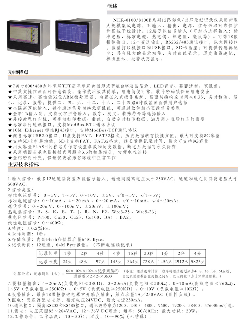 NHR-8100/8100B,12路彩屏/藍(lán)屏無紙記錄儀