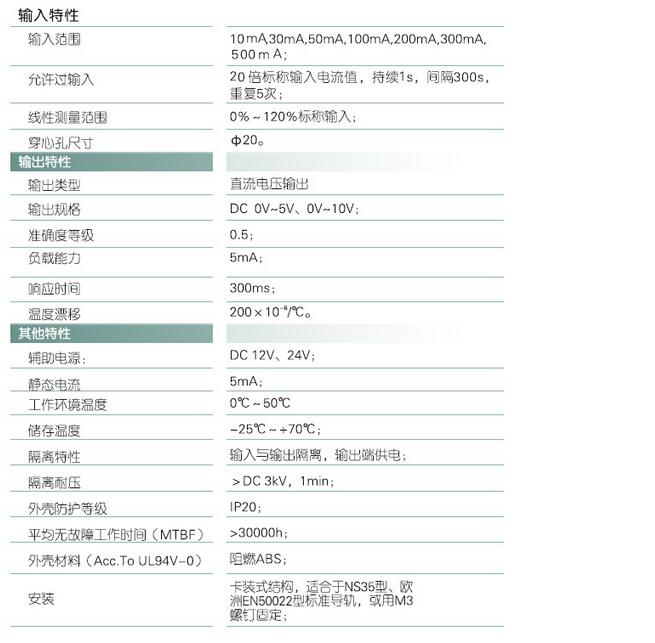 輸入規(guī)格:10mA-500mA范圍可選