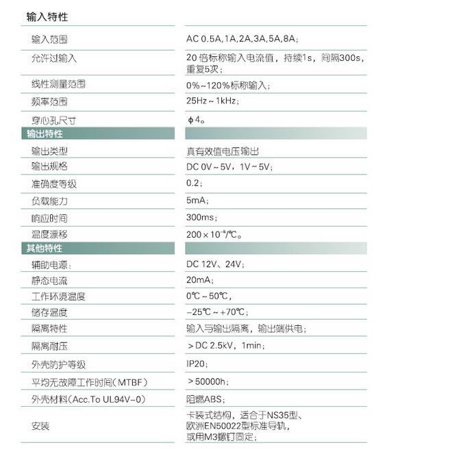 輸出規(guī)格:真有效值輸出DC 0-5V,1-5V
