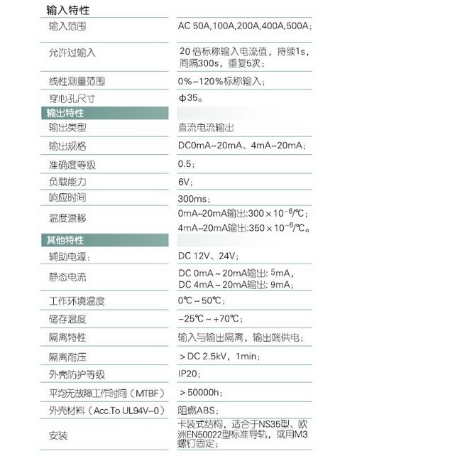 輸入規(guī)格:AC 0-500A范圍可選