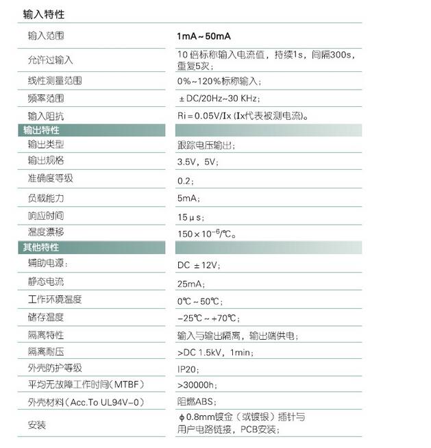 輸入規(guī)格: AC/DC 1mA-50mA范圍可選