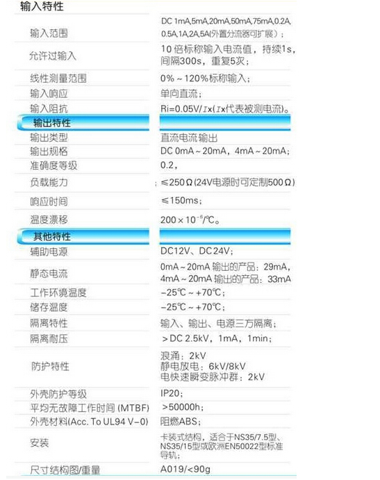產(chǎn)品型號:WBI344U05-S 輸入規(guī)格:DC 1mA~5A范圍可選,外置分流器可擴展 輸出規(guī)格:DC 4-20mA,0-20mA 輔助電源:DC 12V,24V 孔徑大?。?br /> 安裝方式:導(dǎo)軌安裝