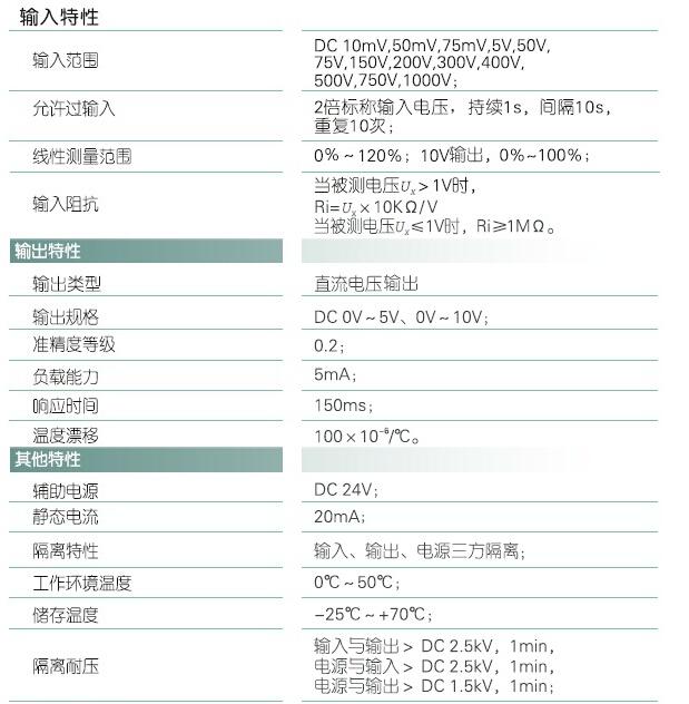 輸入規(guī)格:DC 10mA~1000V范圍可選
