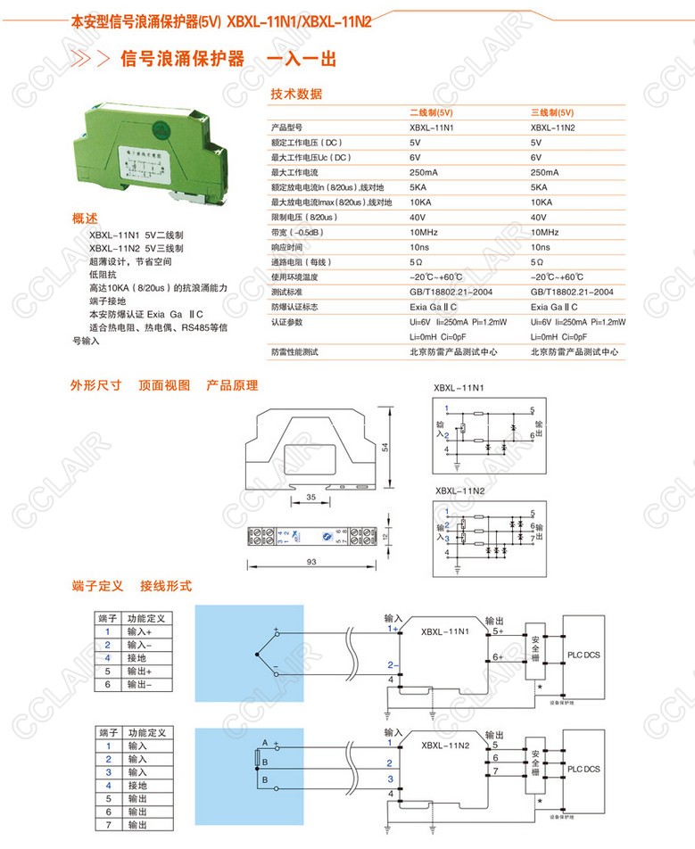 XBXL-11N1,XBXL-11N2,本安型信號浪涌保護器(5V)(一入一出)