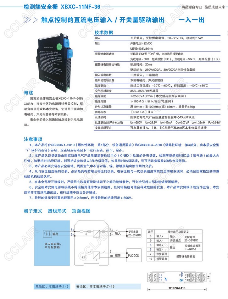 XBXC-11NF-36,操作端安全柵開關(guān)量驅(qū)動輸出(二入二出)