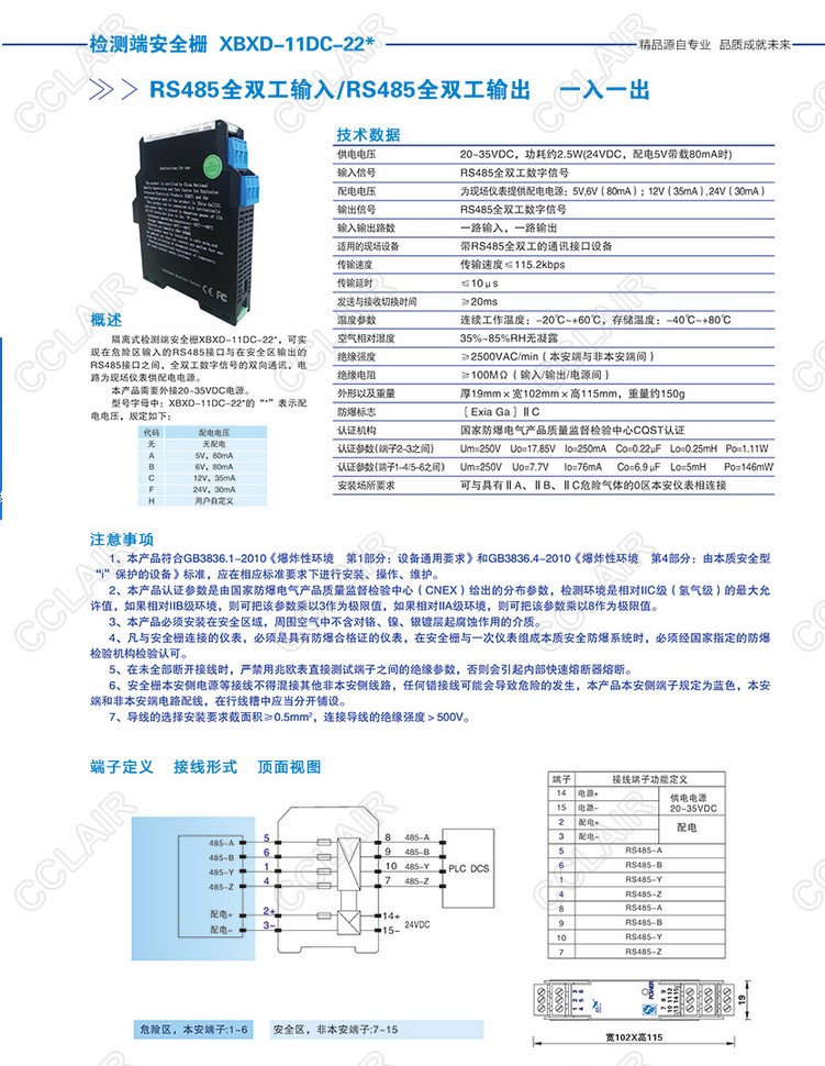 XBXD-11DC-22*RS485全雙工輸入/RS485全雙工輸出(一入一出)