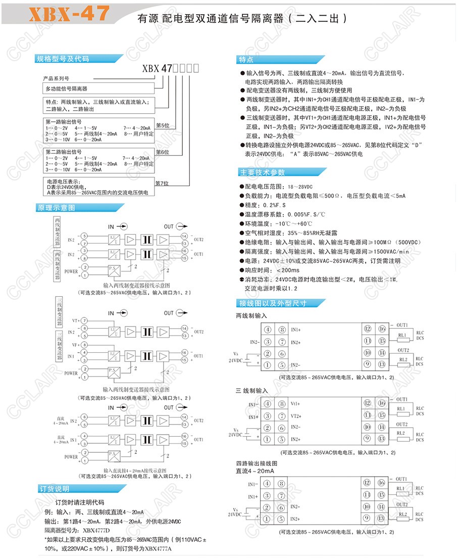 XBX-47D,XBX-47-11D,XBX-47-22D,XBX-47-33D,有源配電型雙通道信號隔離器(二入二出)