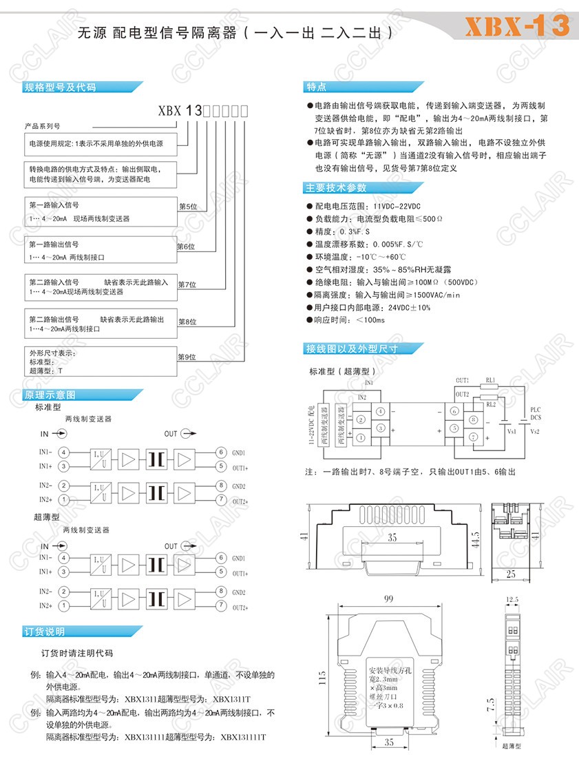 XBX-13,XBX-13-1111,XBX-13-1111T,XBX-13-111,XBX-13-111T,無源配電型信號(hào)隔離器(一入一出、二入二出)
