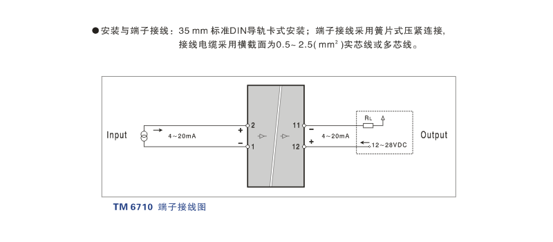 TM6710 直流電流輸入二線制隔離器端子接線圖