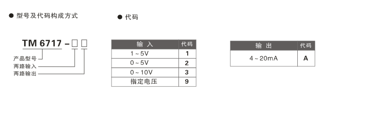 TM6717 直流電壓輸入二線制隔離器選型、訂貨代碼