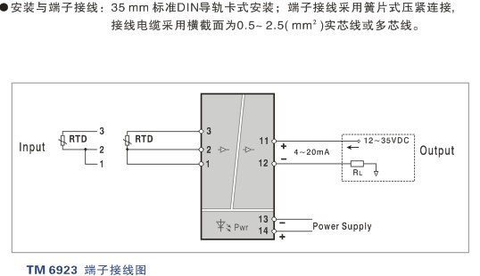 TM6923 熱電阻輸入溫度變送器 支持輸出回路供電,一入一出特性