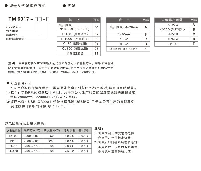 TM6917 熱電阻輸入,智能溫度變送器 一入一出特性