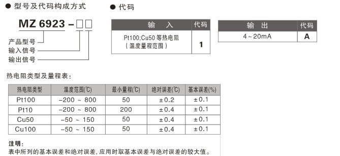 用于Pt100,Cu50 等熱電阻輸入, 經(jīng)隔離變送輸出標準的直流電流信號4~20mA。