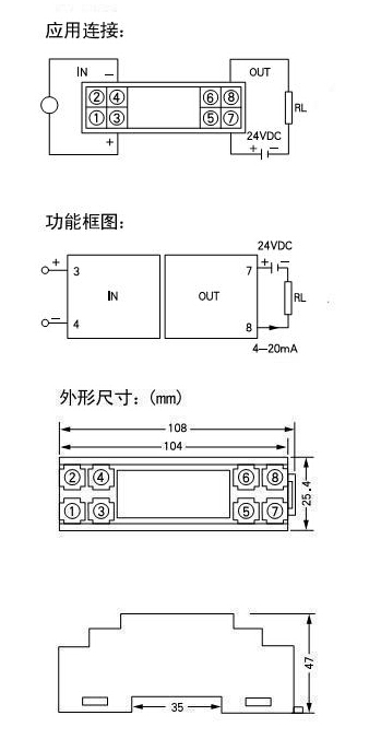 二線制4-20mA輸出;mV,V,mA多種輸入范圍;DIN T型導(dǎo)軌卡裝方式。