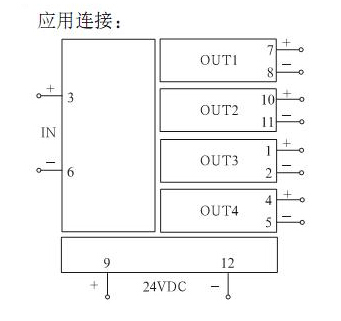 將輸入信號變換為四路相互隔離的信號;輸入 輸出1-4 電源六者間相互隔離;低功耗 低熱量 低漂移;DIN T型導(dǎo)軌安裝 接線端子可插拔