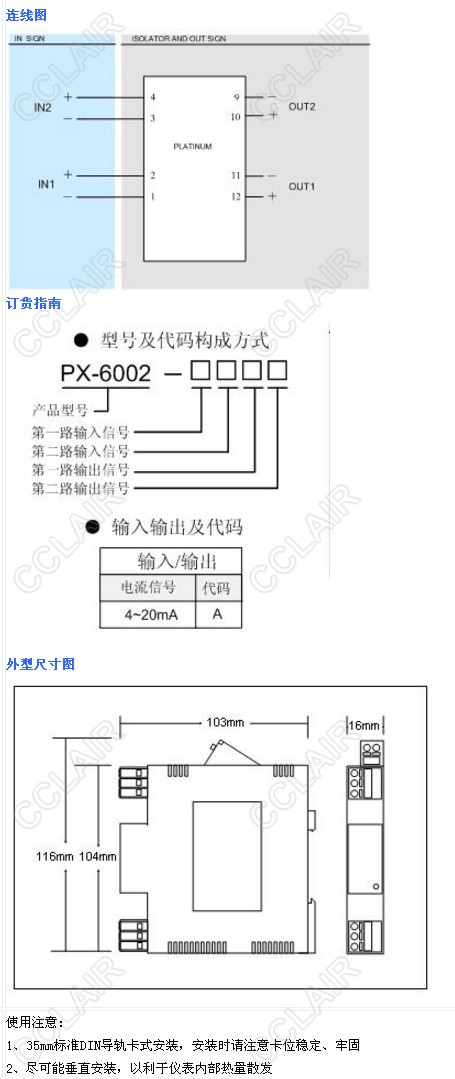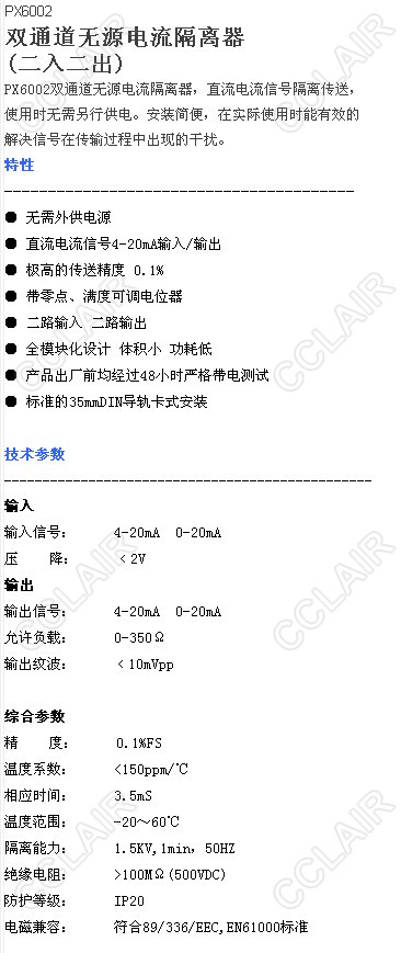 PX6002A,PX6002無源電流隔離器(二入二出)