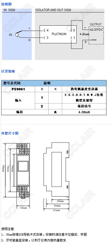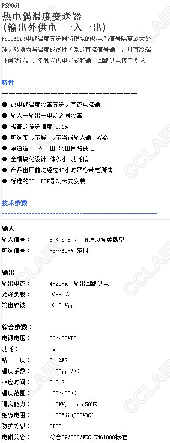 PS90611A,PS90612A,PS9061兩線制熱電偶變送器(一入一出)