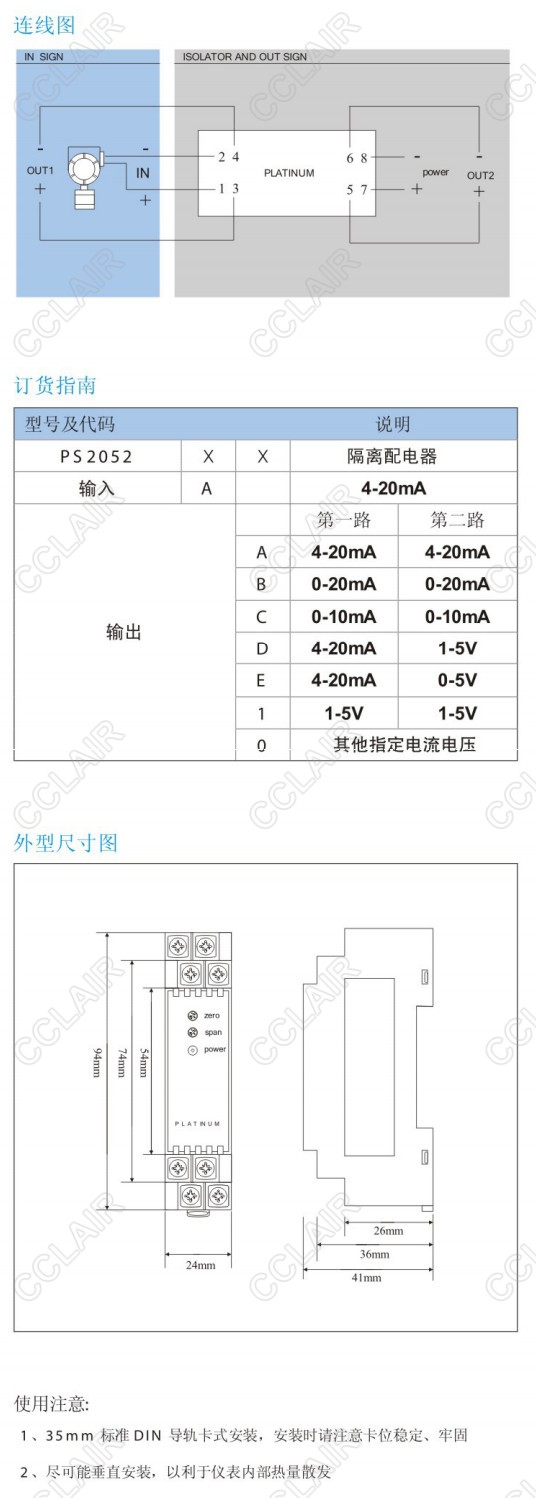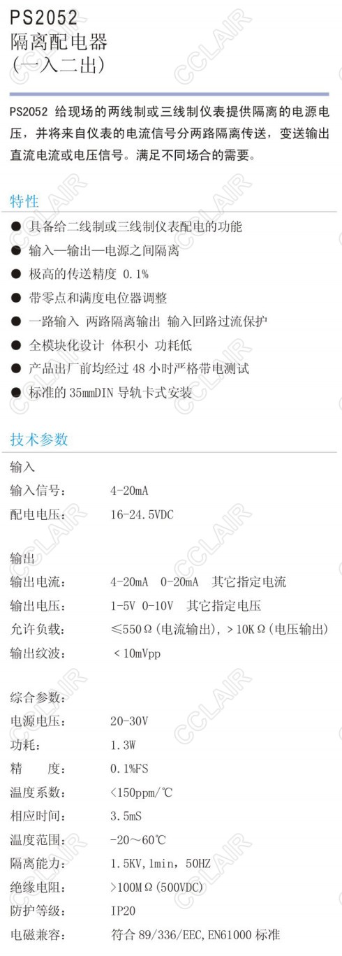PS2052AA,PS2052AB,PS2052AC,PS2052隔離配電器(一入二出)
