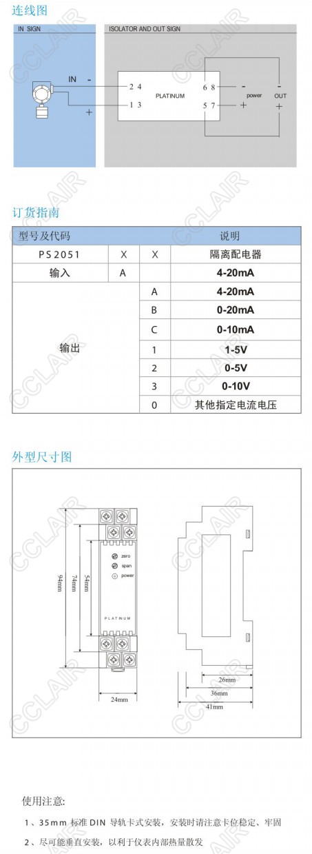 PS2051AA,PS2051AB,PS2051AC,PS2051隔離配電器(一入一出)