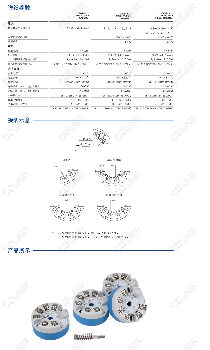 CZWB110-EX.H 熱電阻輸入、HART智能、本安防爆隔離溫度變送器