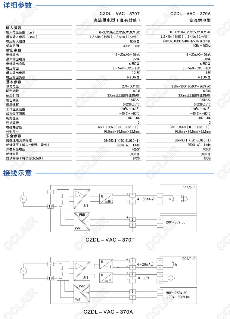 CZDL-VAC-370T 交流電壓輸入電量變送器 小巧的外殼結(jié)構(gòu),35mm標(biāo)準(zhǔn)導(dǎo)軌安裝方式,多種電流、電壓輸出可選擇。 CZDL-VAC-370A 交流電壓輸入電量變送器 小巧的外殼結(jié)構(gòu),35mm標(biāo)準(zhǔn)導(dǎo)軌安裝方式,多種電流、電壓輸出可選擇。