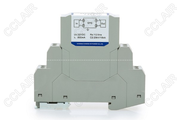 24V信號SPD,三線制,適用于線對地隔離電壓>500V信號回路,最大放電電流Imax(8/20us):20kA/線,12.5mm超薄,通過DIN35金屬導(dǎo)軌接地。
