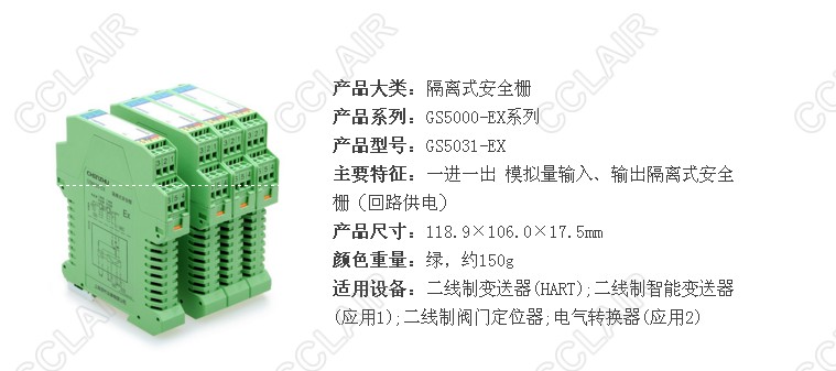 模擬量輸入、輸出隔離柵。它既可給危險區(qū)的變送器提供隔離電源,將變送器產(chǎn)生的電流信號從危險側(cè)隔離傳送到安全側(cè);也可把安全側(cè)的電流信號隔離傳送到危險側(cè),驅(qū)動現(xiàn)場的執(zhí)行機構(gòu)等設(shè)備。同時支持HART數(shù)字信號雙向傳輸,適用于回路供電的DCS、PLC等系統(tǒng)。