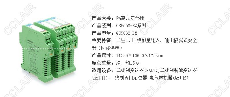 GS5032-EX 二進二出 模擬量輸入、輸出隔離式安全柵(回路供電)
