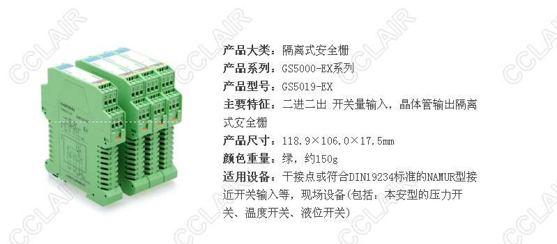 開關(guān)量輸入隔離式安全柵,接收來自危險(xiǎn)區(qū)的干接點(diǎn)或符合DIN19234標(biāo)準(zhǔn)的NAMUR型接近開關(guān)輸入, 通過安全柵隔離傳輸?shù)桨踩珔^(qū)晶體管輸出,它具有輸入斷線檢測報(bào)警指示及輸入輸出反相設(shè)置功能。該產(chǎn)品需要獨(dú)立供電,電源、輸入和輸出三隔離