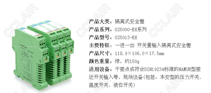 型號(hào): GS5013-EX 一進(jìn)一出 開關(guān)量輸入,晶體管輸出隔離式安全柵