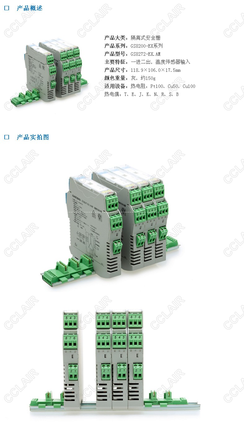 型號(hào): GS8272-EX.AM 一進(jìn)二出 溫度傳感器輸入,4~20mA、RS485輸出報(bào)警設(shè)定隔離式安全柵