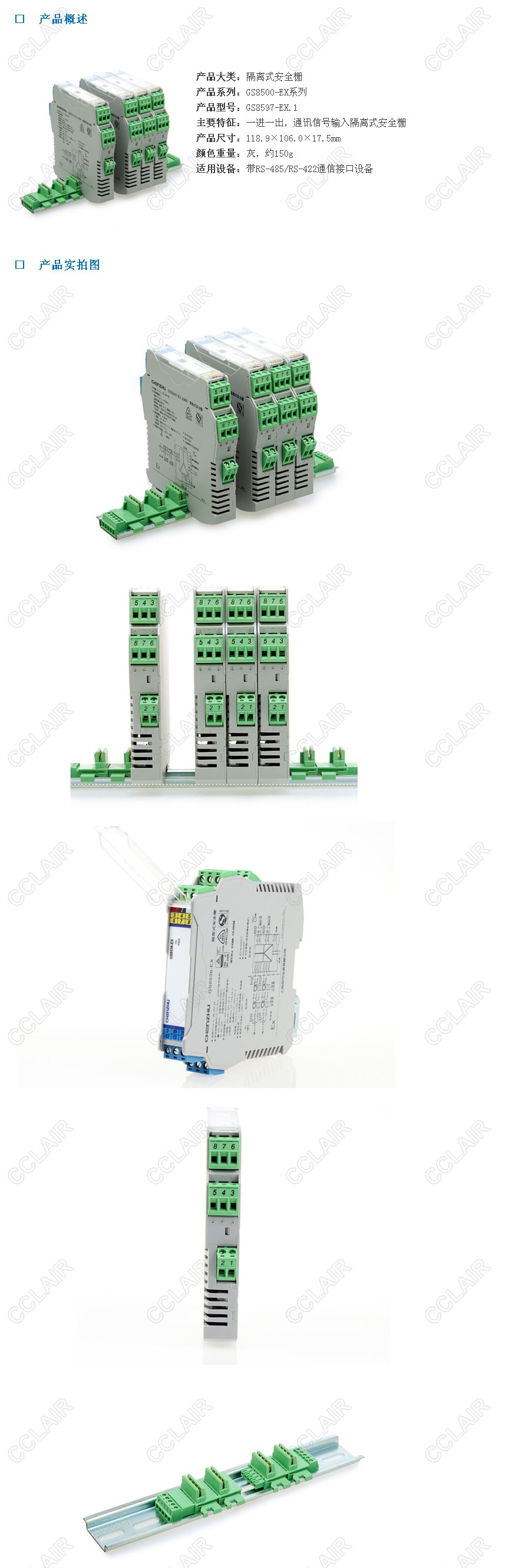 型號: GS8597-EX.1 一進(jìn)一出 RS-485全雙工輸入RS-485半雙工輸出隔離式安全柵