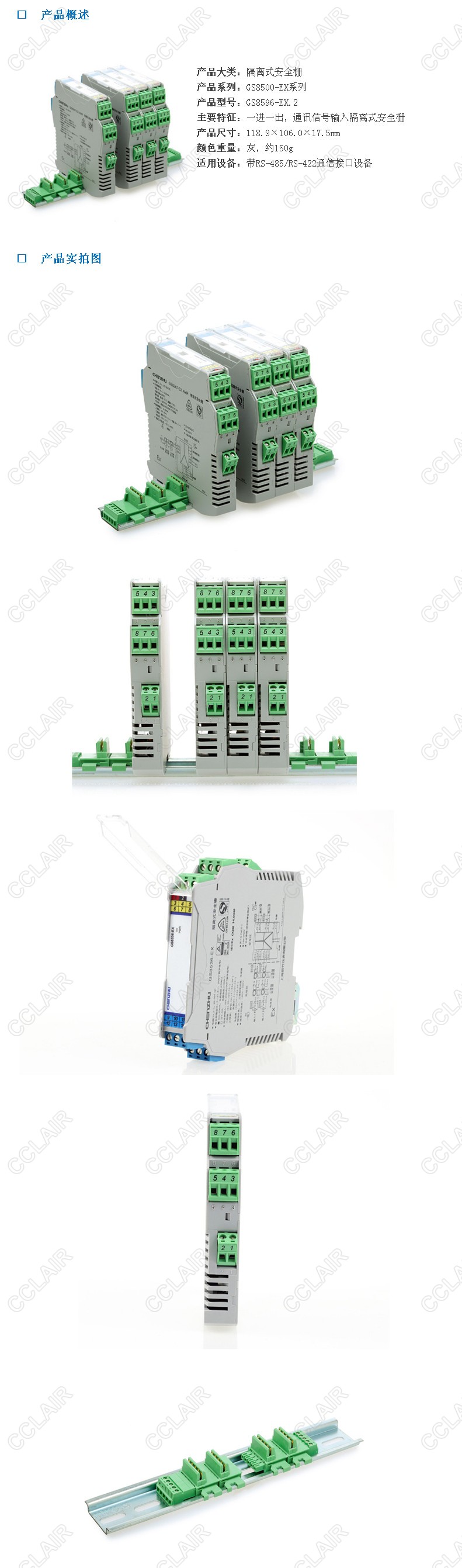 GS8596-EX.2 一進(jìn)一出 RS-485半雙工輸入RS-232輸出隔離式安全柵
