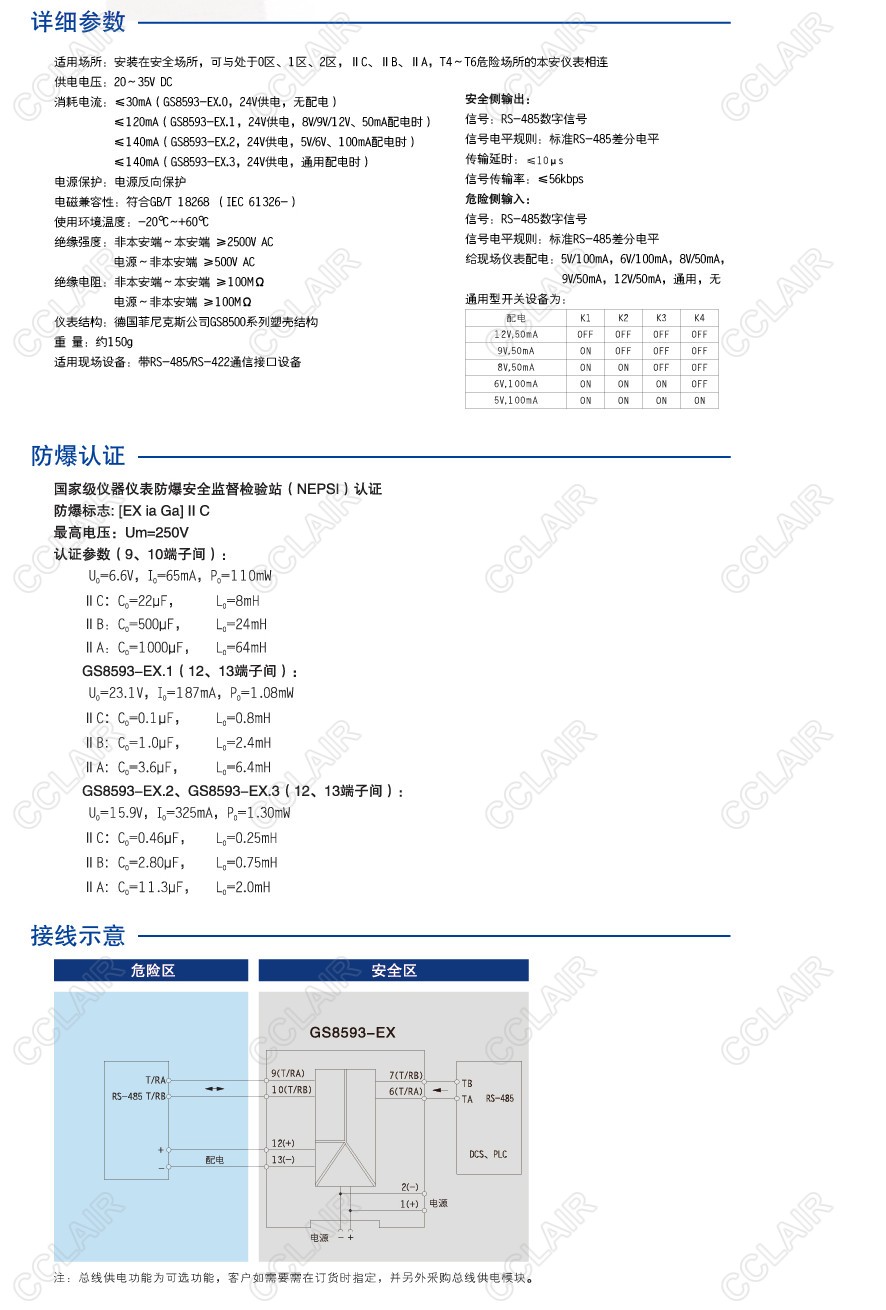 無(wú)配電;該產(chǎn)品需要獨(dú)立供電,電源、輸入和輸出三隔離。實(shí)現(xiàn)RS-485數(shù)字信號(hào)在危險(xiǎn)區(qū)和安全區(qū)的雙向通信,并給現(xiàn)場(chǎng)儀表提供隔離電源。