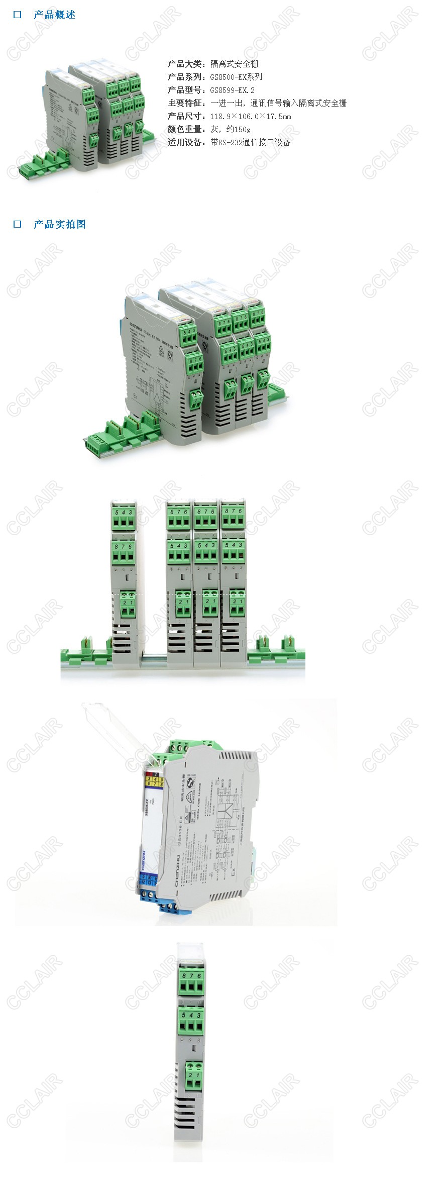 型號(hào): GS8599-EX.2 一進(jìn)一出 RS-232輸入RS-485半雙工輸出隔離式安全柵