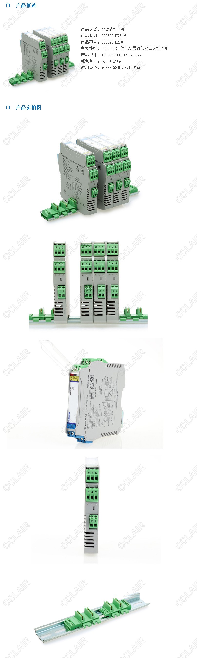 型號(hào): GS8595-EX.0 一進(jìn)一出 RS-232輸入RS-485全雙工輸出隔離式安全柵