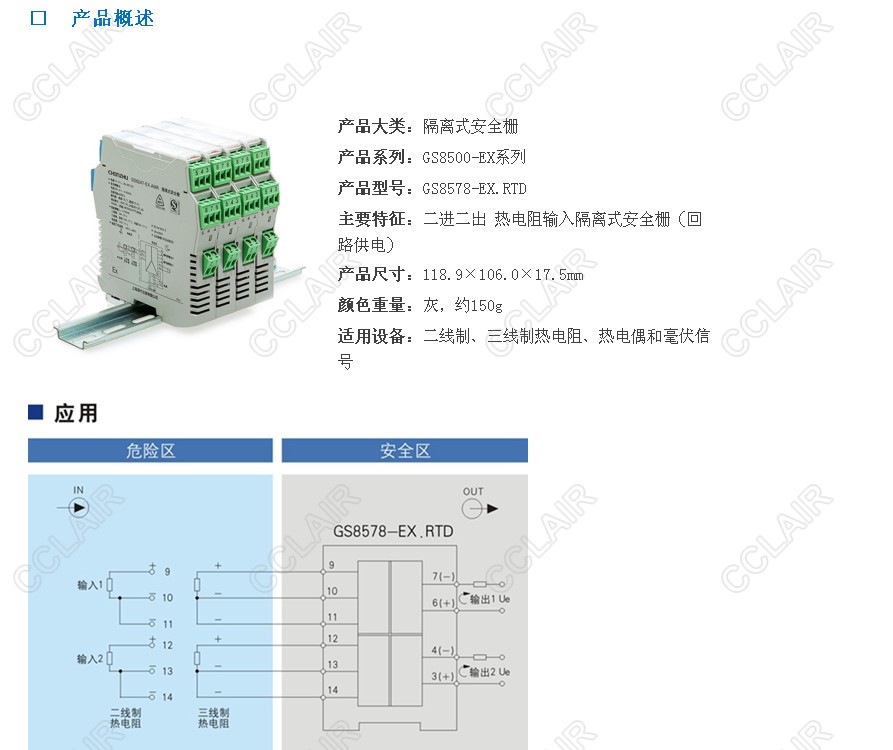 GS8578-EX.RTD 二進二出 熱電阻輸入隔離式安全柵(回路供電)