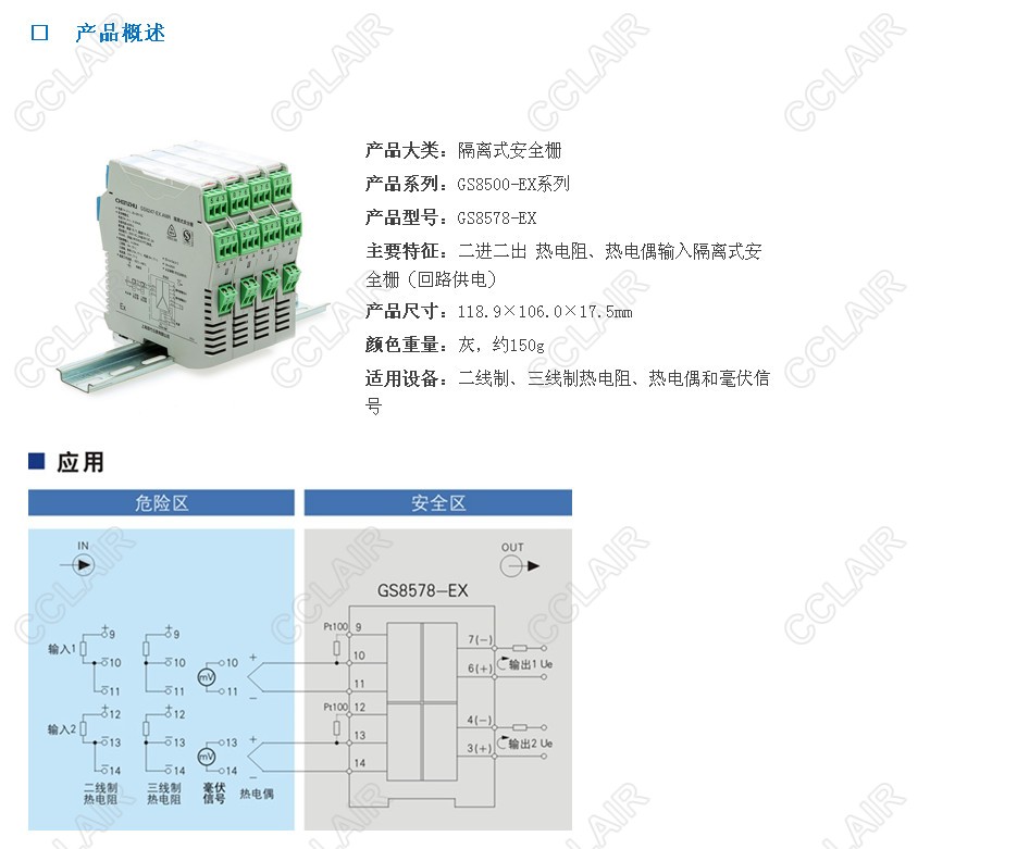 型號(hào): GS8578-EX 二進(jìn)二出 熱電阻、熱電偶輸入隔離式安全柵(回路供電)