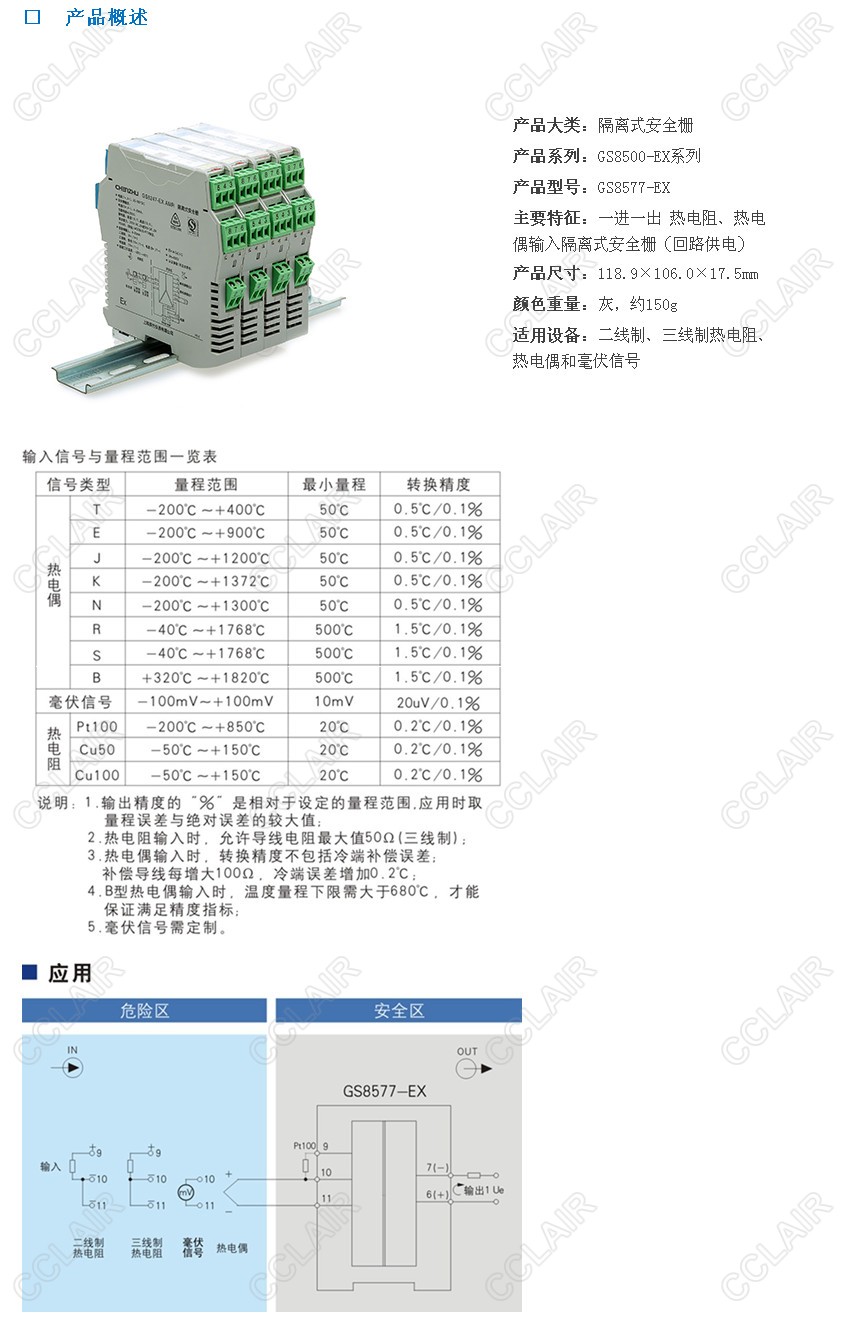 型號: GS8577-EX 一進一出 熱電阻、熱電偶輸入隔離式安全柵(回路供電)