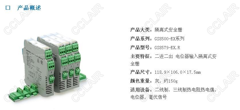 隔離式安全柵,將現(xiàn)場的熱電阻、熱電偶、毫伏信號、電位器信號轉(zhuǎn)換成0/4~20mA的電流信號或0~5V電壓信號,從危險區(qū)隔離傳送到安全區(qū)。它具有冷端補償功能,是智能型的,可通過計算機對熱電阻、熱電偶、電位器的分度號、量程范圍等進行組態(tài)。該產(chǎn)品需要獨立供電,電源、輸入和輸出的三隔離。