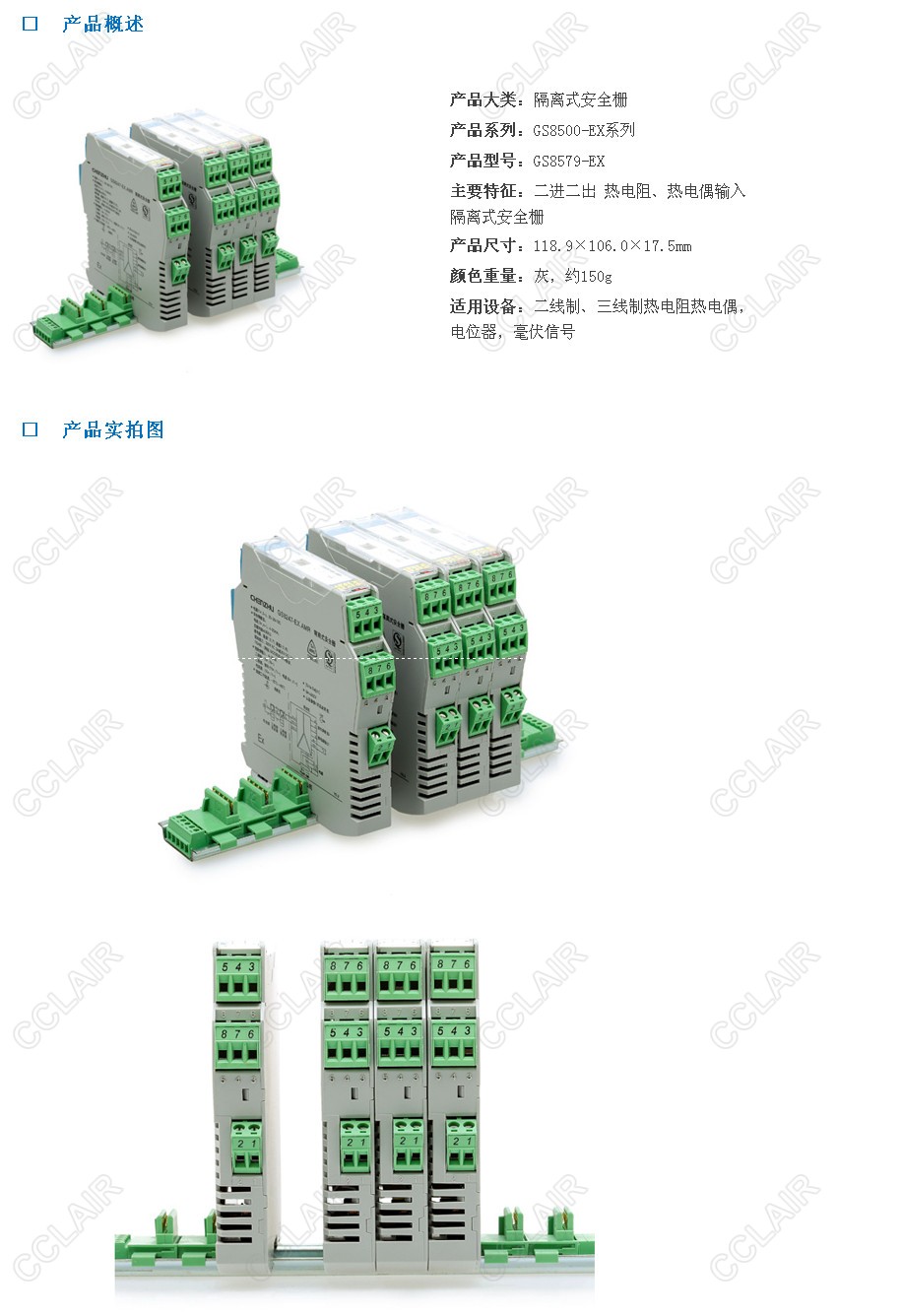 型號: GS8579-EX 二進二出 熱電阻、熱電偶輸入隔離式安全柵