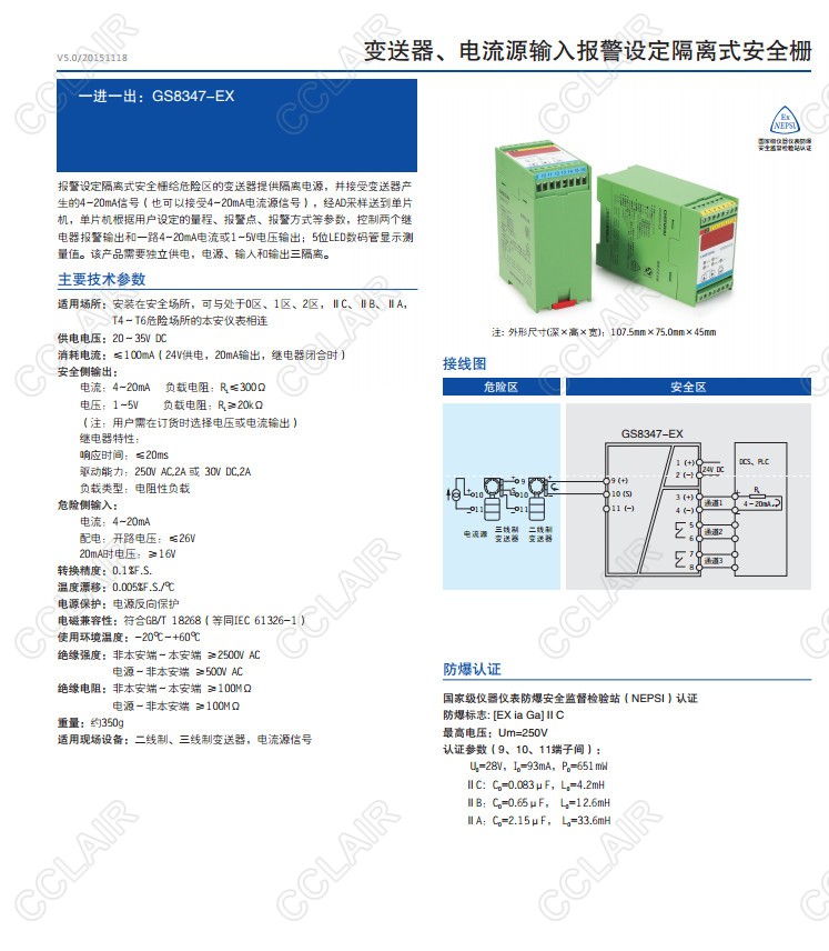 GS8347-EX 一進三出 報警設(shè)定隔離式安全柵