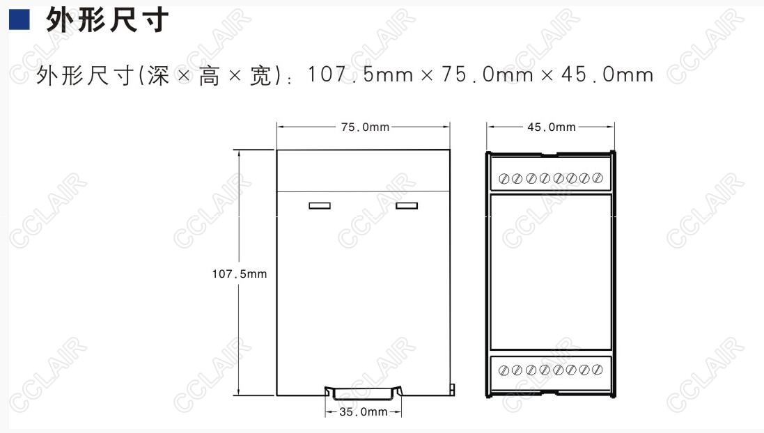 一進三出 報警設(shè)定隔離式安全柵給危險區(qū)變送器提供隔離電源,并接受變送器產(chǎn)生的4~20mA(也可以接受4~20mA電流源信號),經(jīng)AD采樣送到單片機,單片機根據(jù)用戶設(shè)定的量程、報警點、報警方式等參數(shù),控制兩個繼電器報警輸出和一路4~20mA電流或1~5V電壓輸出;5位LED數(shù)碼管顯示測量值。該產(chǎn)品需要獨立供電,電源、輸入和輸出三隔離。
