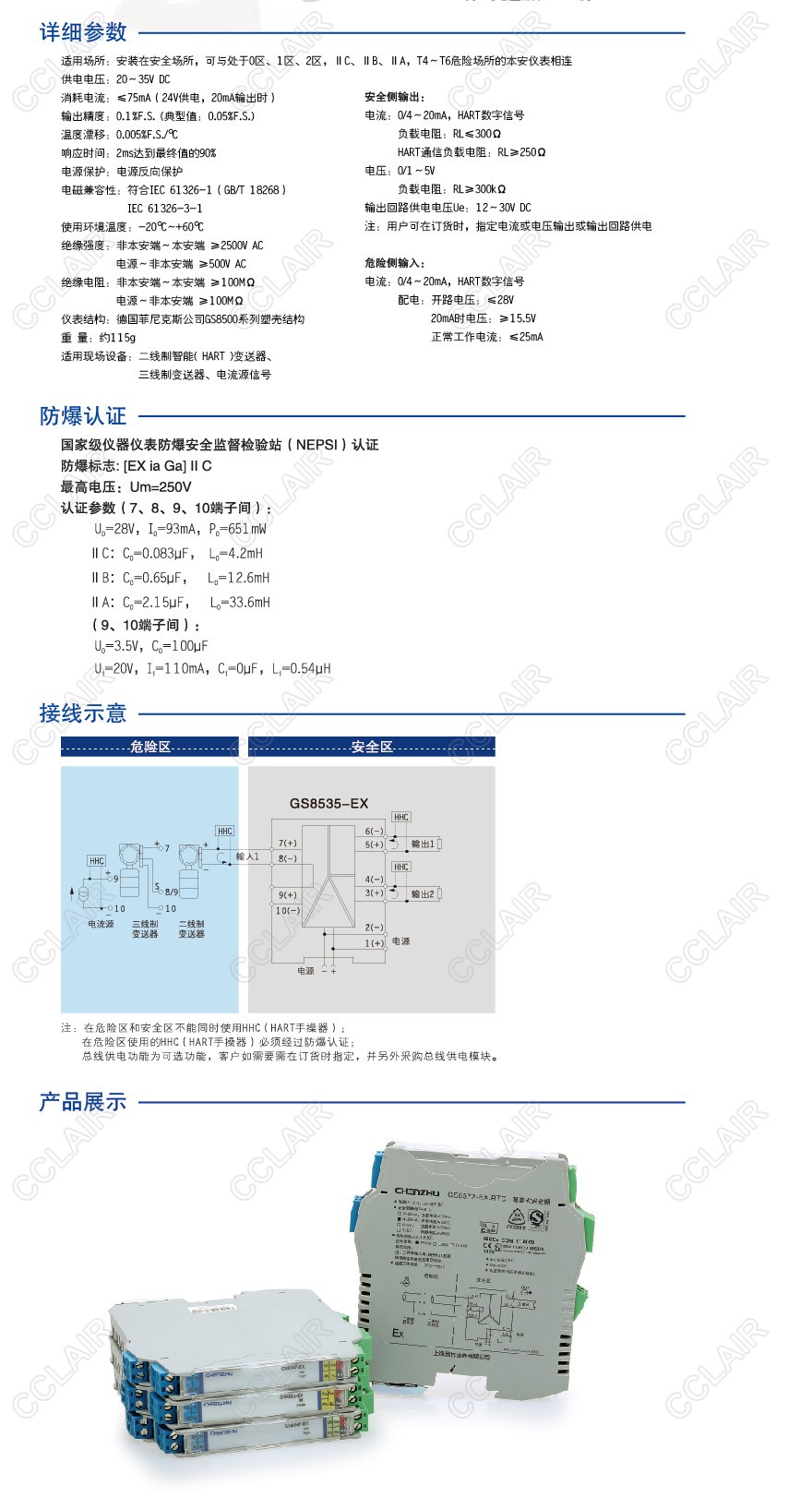 GS8535-EX 一進二出 模擬量輸入隔離式安全柵