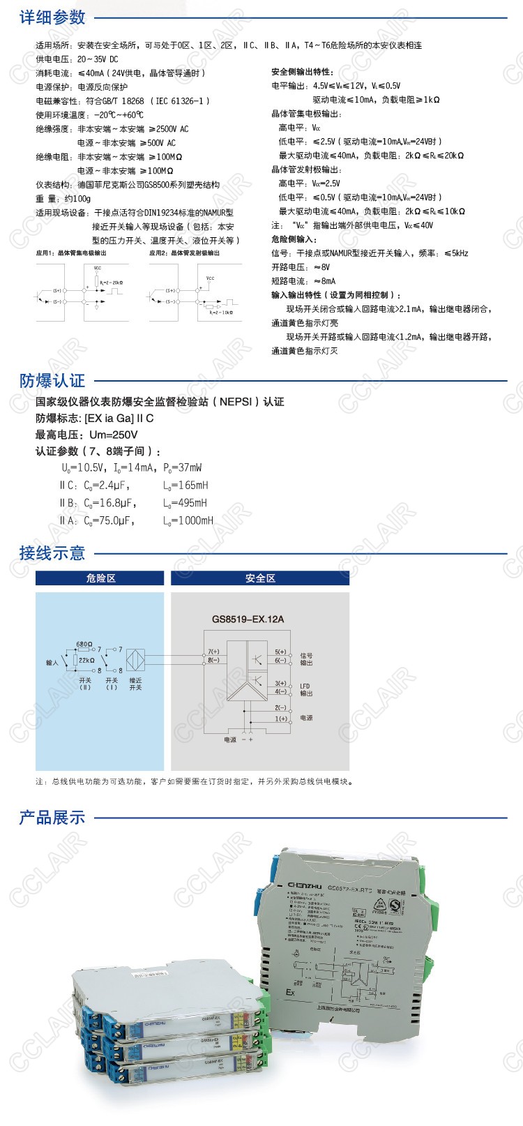 GS8519-EX.12A 一進二出 開關(guān)量輸入 帶LFD功能隔離式安全柵