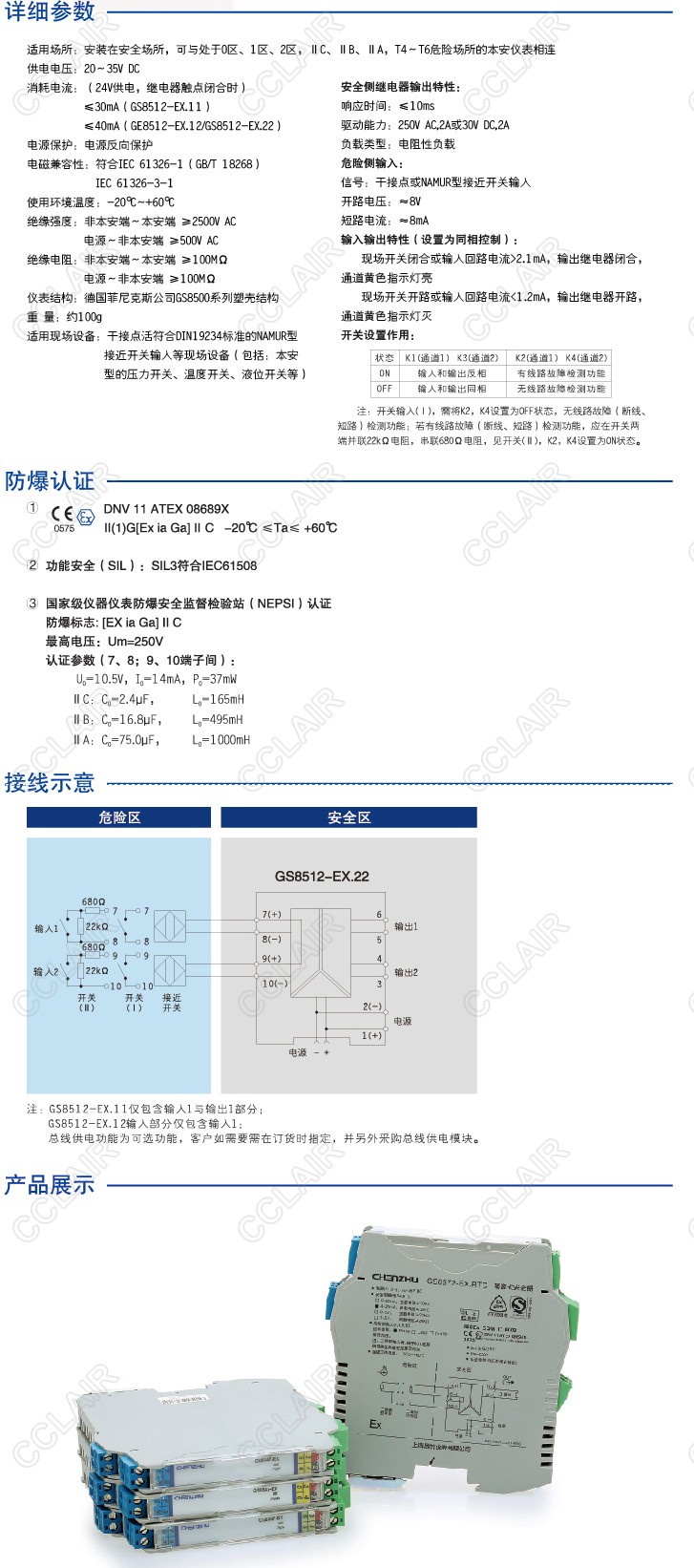 GS8512-EX.22 二進(jìn)二出 開關(guān)量輸入,繼電器輸出隔離式安全柵