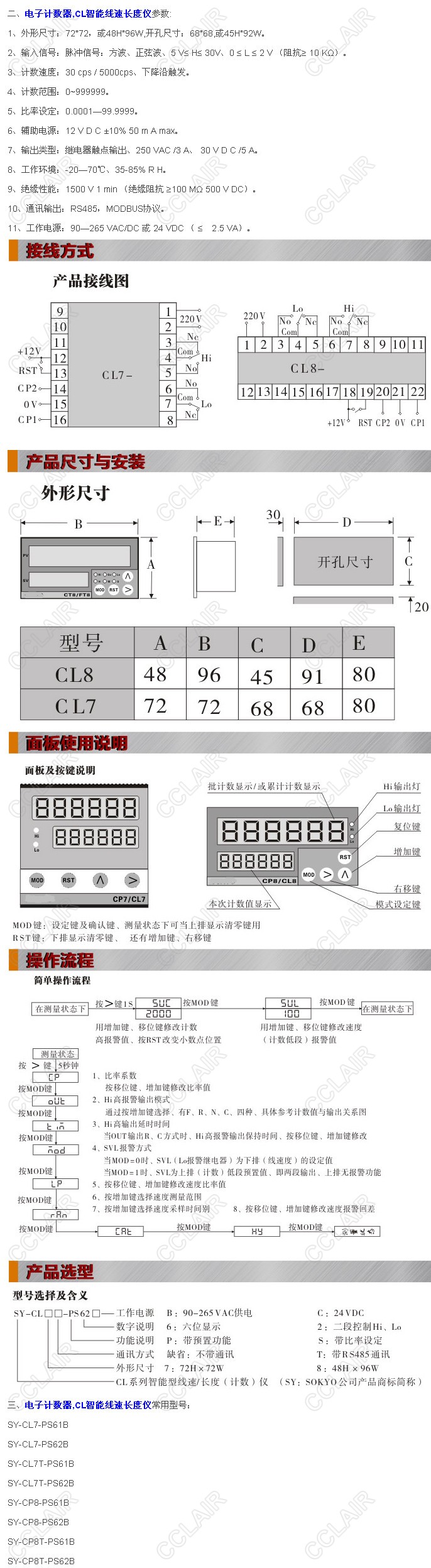 SY-CL7-PS61B,SY-CL7-PS62B,SY-CL7T-PS61B,SY-CL7T-PS62B,SY-CP8-PS61B,CL智能線速長度儀