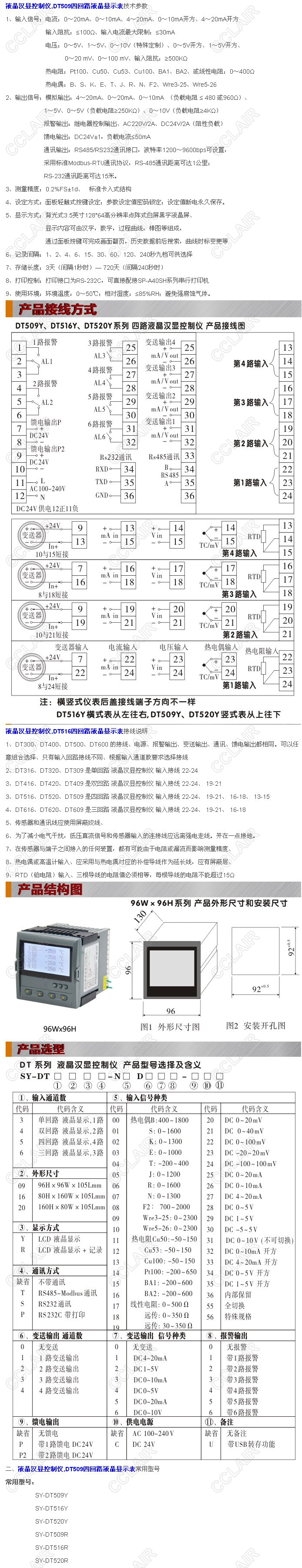 SY-DT509Y,SY-DT509R,SY-DT509YT,SY-DT509RT,SY-DT509YS,DT509四回路液晶顯示控制儀