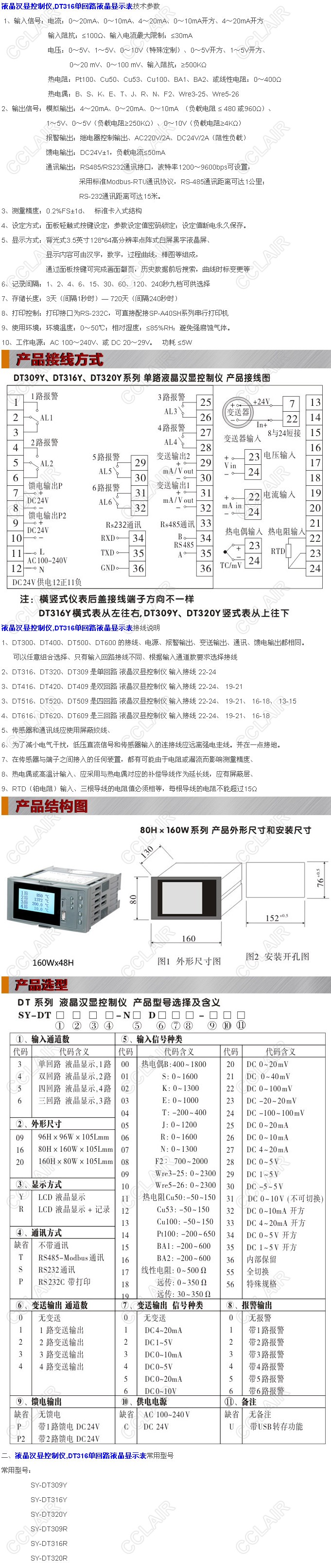 SY-DT316Y,SY-DT316R,SY-DT316YT,SY-DT316RT,SY-DT316YS,DT316單回路液晶顯示控制儀