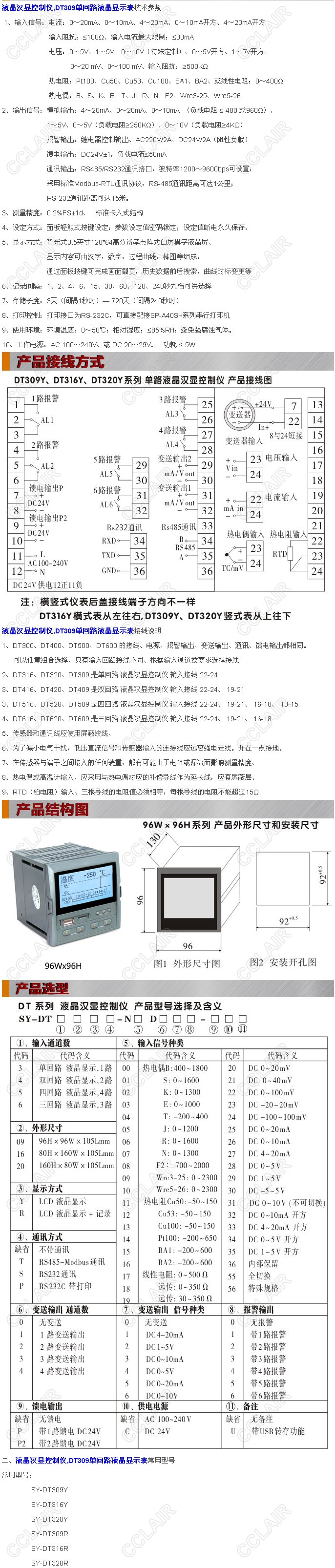 SY-DT309Y,SY-DT309R,SY-DT309YT,SY-DT309RT,SY-DT309YS,DT309單回路液晶顯示控制儀